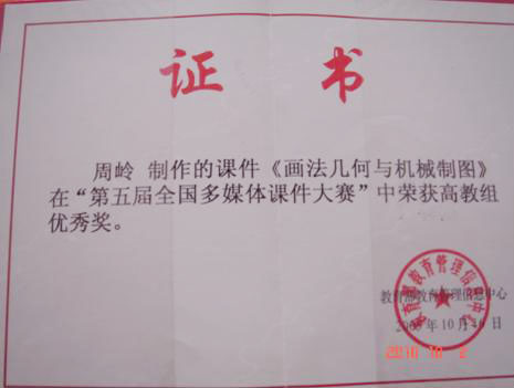 第十一届全国高校多媒体课件大赛优秀奖,2011 |