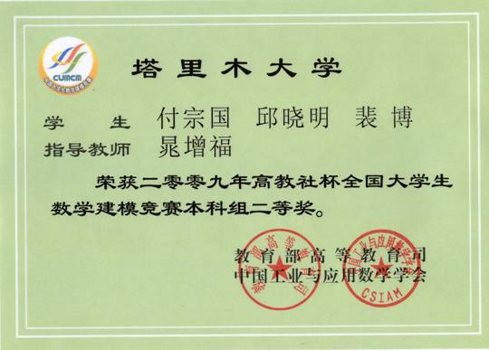 2009年全国数学建模竞赛卡利娱乐城(中国)唯一官方网站 获奖情况: